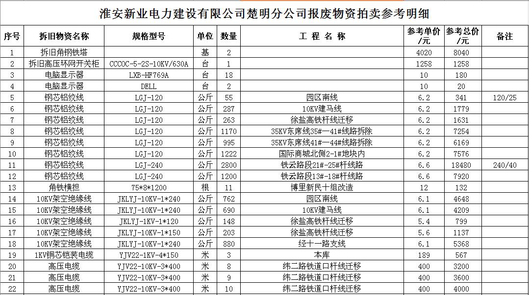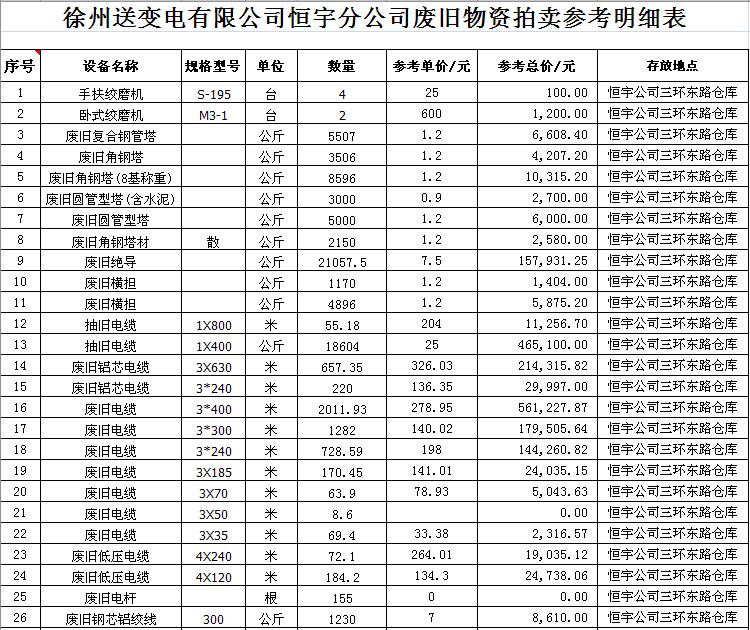關(guān)注微信公眾號受江蘇徐供、淮供集體資產(chǎn)運(yùn)營中心委托,我公司將通過中國拍賣行業(yè)協(xié)會網(wǎng)絡(luò)拍賣平臺以網(wǎng)絡(luò)競價的方式公開拍賣以下單位的廢舊物資各一批: