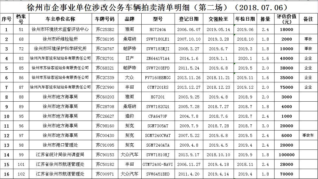 一、拍賣(mài)標(biāo)的:徐州市企事業(yè)單位改革公務(wù)車(chē)輛(詳見(jiàn)每期拍品目錄)。