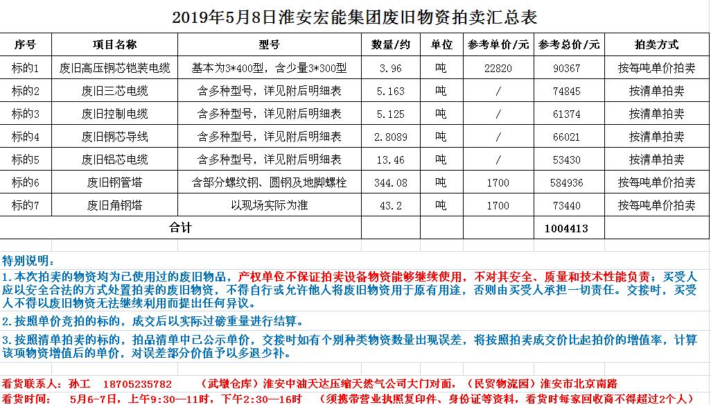 關(guān)注微信公眾號(hào)受淮安宏能集團(tuán)有限公司委托,我公司將通過中國拍賣行業(yè)協(xié)會(huì)網(wǎng)絡(luò)拍賣平臺(tái)以網(wǎng)絡(luò)競價(jià)的方式公開拍賣以下廢舊物資,主要包括:高壓銅芯電纜、控制電纜、銅芯導(dǎo)線、鋁芯電纜、角鋼塔、鋼管塔等。