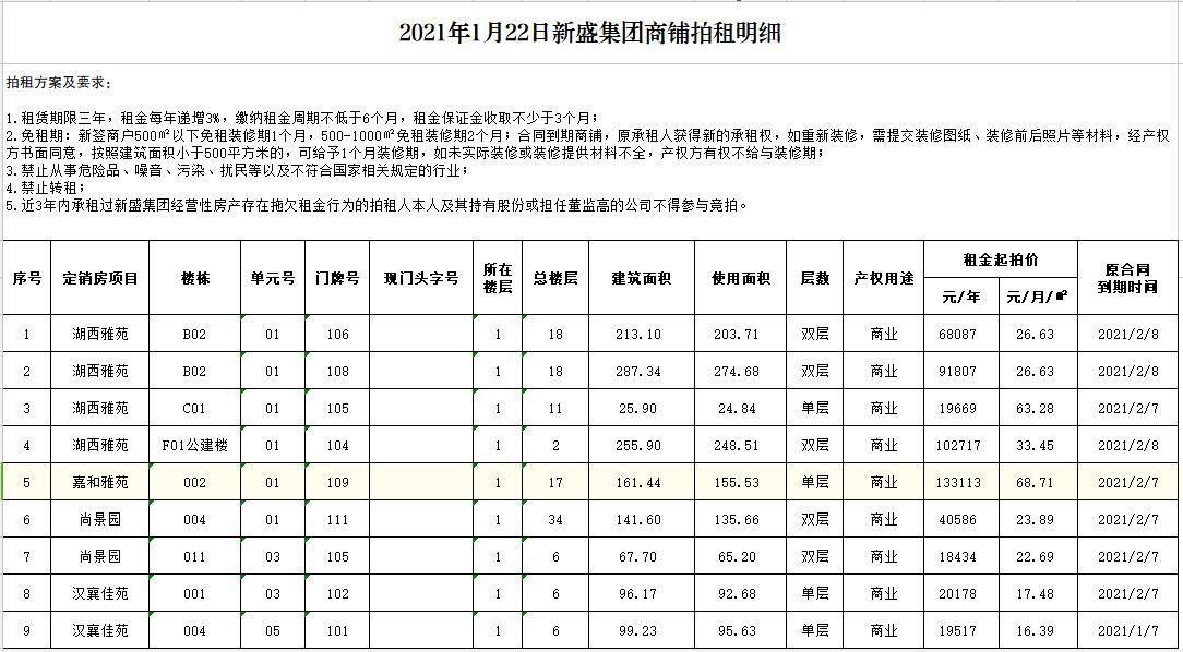 關(guān)注微信公眾號我公司受委托,定于2021年1月22日10時在中山南路55號本公司拍賣廳公開拍租以下商鋪:湖西雅苑4間、嘉和雅苑1間、漢襄佳苑2間、尚景園2間。面積分別約為數(shù)十至二百余平米,租期三年。